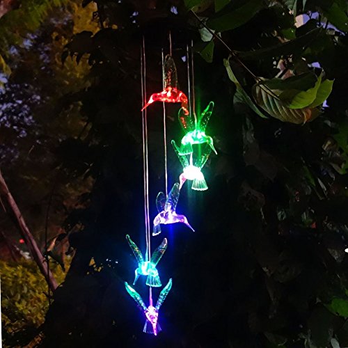 Solar Hummingbird Wind Chimes, Color-cha