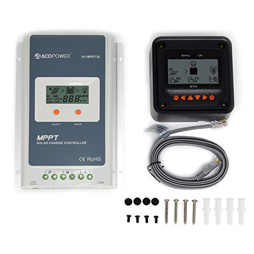 ACOPOWER 30A MPPT Solar Charge Controller 100V input HY-MPPT Series HY-MPPT30+ MT-50 Solar Charge LCD Display