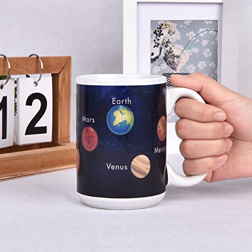 Sunmner Heat Sensitive Color Changing Coffee Mug Novelty Magic Morning Coffee Mug Tea Cup Solar System Porcelain Tea Cup Unique Ideal Gifts 15 oz, Planet