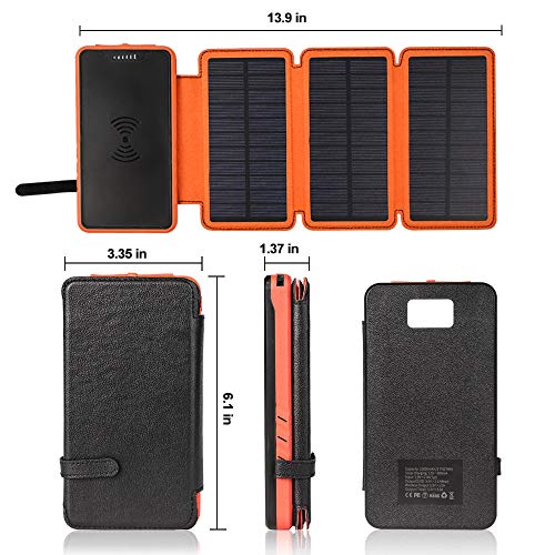 • Solar Charger Qi Wireless Charger Portable Solar Power Bank 20000mAh Waterproof Battery Packs with Dual Ports Solar Phone Charger for iPhone, Andriod Phone, iPad(Orange Wireless Charger)