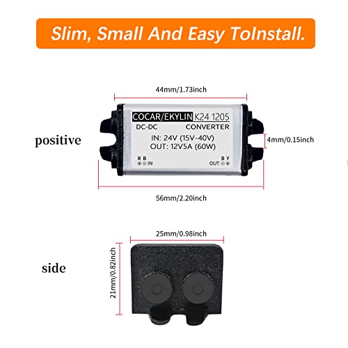 EKYLIN DC Converter 24V to 12V 5A 60W, Voltage Converter Step Up DC Power Adapter Converter Waterproof Heavy Duty Transformer for Car Truck Vehicle Boat Motor Solar System, black white, DC 24V to 12V 5A Item Sku: