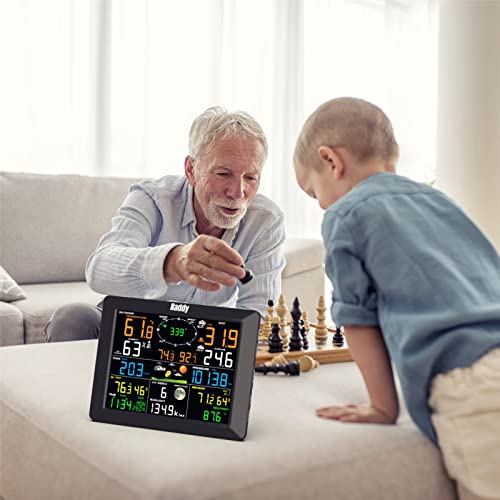 Radioddity Raddy WF-100C Weather Stations Wireless Indoor Outdoor with Rain Gauge Thermometer Humidity for Home, 8" Large Display Wind Speed Solar Multiple Sensors, Black Item Sku: