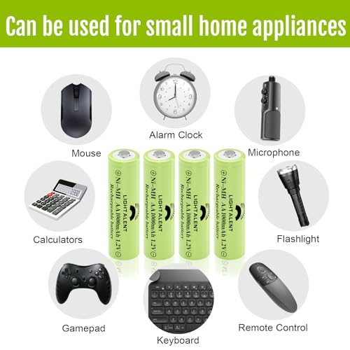 Lightalent Ni-MH AA Rechargeable Batteries, Double A High Capacity 1.2V Pre-Charged for Garden Landscaping Outdoor Solar Lights, String Lights, Pathway Lights (AA-1000mAh-12pack) Item Sku: