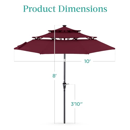 Best Choice Products 10ft 3-Tier Solar Patio Umbrella, Outdoor Market Sun Shade for Backyard, Deck, Poolside w/ 24 LED Lights, Tilt Adjustment, Easy Crank, 8 Ribs - Burgundy