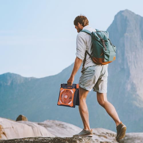 WESTTREE Westreete Solar Fan with LED Lantern & Power Bank, Foldable Angle Solar Powered and USB Cordless Fan for Travel Camping, Orange, 1