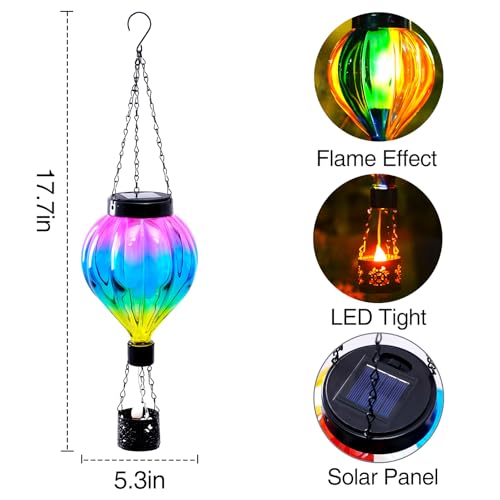 • Hot Air Balloon Solar Lantern with Flickering Flame Gifts for Women Grandma Mom Outdoor Hanging Light Solar Decorative Air Balloon Lamp for Garden Patio Yard and Home(Pink & Blue)
